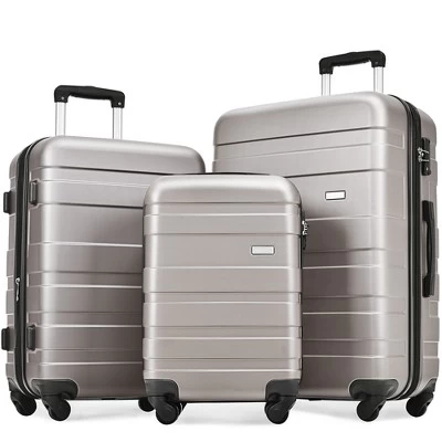 Set of 3 includes 20″, 24″, and 28″ luggage. One set can meet all your different travel needs. Made of ABS material, smooth 360° swivel wheels and expandable function make your travel easier. With an upgraded TSA lock, only you or a TSA agent can easily access your items while traveling. Ample storage and a fully lined interior with zippered compartments keep your belongings neat and organized.