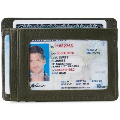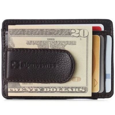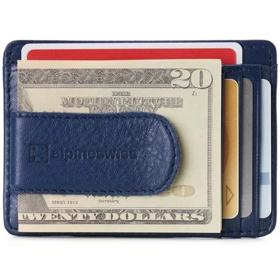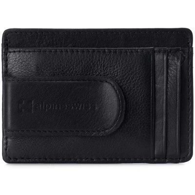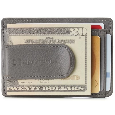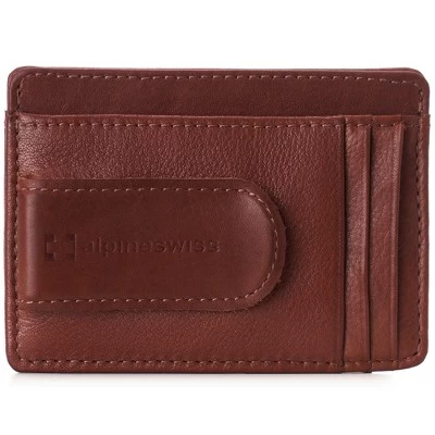 Dermot RFID Spring Money Clip By Alpine SwissProduct Features: Genuine Leather DERMOT SPRING MONEY CLIP – MSRP $45 – Meant for use in your front pocket, our slim design is stylish, sleek, and a convenient modern alternative to a traditional bulky wallet with room for all of your essentials. After about 3-4 weeks of use, this genuine leather wallet will begin to stretch and conform according to your needs, just like an expensive pair of leather shoes. In time you’ll be able to fit double cards in some slots. FUNCTIONAL – Measurements: 4 1/8″ L x 3″ W x 1/2″ H. Total of 8 slots + 1 clip: Leather covered spring clip for cash holds up to 15 folded bills, 4 vertical card slots, 2 horizontal card slots, 1 ID Window, and 1 top full length opening horizontal slot for cash, receipts, or cards. PRO TIP – Use two cards on the outside of your folded cash bills like bookends to easily fit the most in your center cash pocket. YORK COLLECTION – Original classic line accented with our embossed logo. Comes in a black Alpine Swiss gift box. The York Collection features dressy traditional leathers that are ethically sourced and processed using sustainable eco-friendly methods. SOFT NAPPA LEATHER – The Dermot spring money clip wallet is skillfully crafted from quality genuine cowhide nappa leather. The barely-there pebble grain texture is buttery soft to the touch making it both luxurious and pliable to easily conform to fit multiple cards per slot. RFID PROTECTED: Certified independent lab tests in Met Labs Santa Clara, CA facility. Secure your personal data for credit card RFID chips operating at 13.56 MHz frequency while allowing use of 125 KHz proximity cards such as ID badges, hotel cards & some transit cards. MSRP $45.00