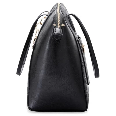 - Branded shiny gold hardware, rivets, and decorative ornament