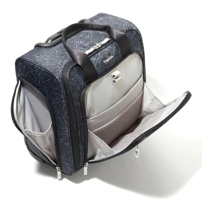 With a telescoping handle, removable laptop pocket, and a lightweight design, this streamlined travel bag is right at home rolling through the airport or nestled under a seat. Locking zippers add an extra layer of security, while the multifunctional pockets ensure this under seat carry-on bag is a breeze to pack.