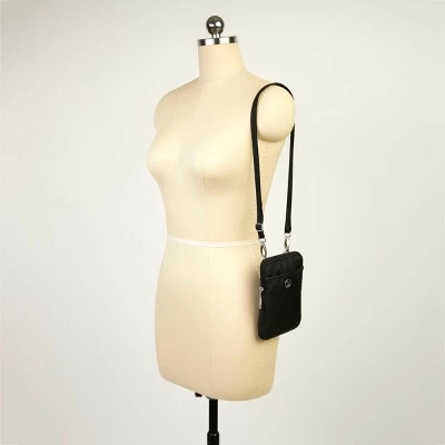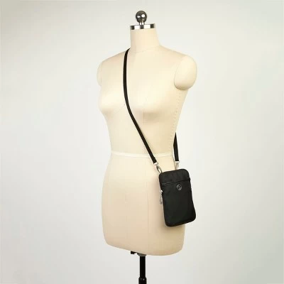 Small in stature but big on features, the Arlington mini bag is the perfect pick for traveling light — and traveling smart! RFID-protected card slots and a passport pocket offer easy access to your essentials, while the adjustable crossbody strap lets you wear it your way. Statement-making silver hardware adds the finishing touch to this modern must-have.PRACTICAL AND STYLISH: The Arlington mini bag brings you a convenient, hands-free design in a sleek, modern shape so you can seize the day with simple, stress-free style. INTERIOR ORGANIZATION: A quick-access phone pocket and three credit card slots keep your most-used essentials ready to go. RFID BLOCKING: RFID protection keeps your credit cards and ID from being scanned and stolen. LIGHTWEIGHT AND WATER RESISTANT: Each water-resistant Arlington bag weighs just .22 lb and measures 7” tall, 4.5” wide, and 0.5” deep. ADJUSTABLE STRAP: An adjustable strap helps you customize your fit for comfortable all-day wear.