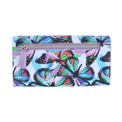 This colorful and stunning butterfly design clutch wallet is a fun way to keep your cash, cards, and coins stored and organized. The interior has multiple pockets, including 3 gusseted compartments to separate your cash, coupons, and your receipts. The RFID blocking will help protect your personal information against identity theft and fraud.