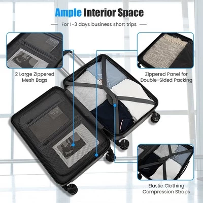 - Ample Interior Space: The interior of the 20” carry-on luggage features elastic clothing compression straps, 2 large zippered mesh bags, and a zippered panel for double-sided packing, which is suitable for 1-3 days business short trips. And thanks to the reasonable layout, there is no need to worry about your things would in a mess when you open the suitcase.