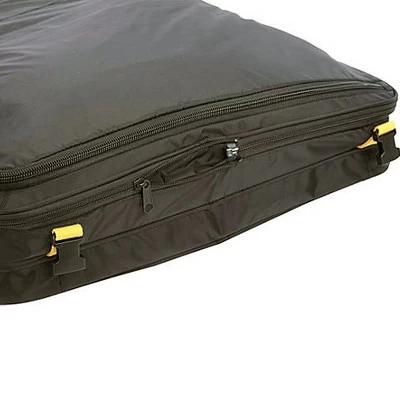 - 4 adjustable clips along side and bottom to expand for more packing space. Multiple zippered pockets to keep all essentials organized.