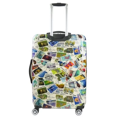 Be part of the 100-year celebration of Disney magic with limited edition Ful X Disney 100 years stamp ABS hard-side spinner suitcase luggage. This 30-inch checked luggage is printed with stamps of Disney characters. Constructed with 8 spinner wheels, interior compartments, and straps for magical traveling.-Officially licensed Disney 100 Years Stamps Luggage.-Made with durable ABS Plastic and PC film printed with stamps of Disney characters (Exterior 90% ABS 10% PC film, Interior Polyester) -Supported on 8 stable spinner wheels for hassle-free wheeling. -Convenient aluminum telescopic handle is easy to grip. -Sizeable polyester-lined main compartment is divided for easy organizing. -Interior includes 2 mesh zip pockets and a zip wet dry compartment for personal essentials. -Expandable for more space with a 2 inch zipper gusset.-Retractable top and side carry handle for loading into trunks, cars, and overhead bins. -Silver Hardware-Easy to spot clean. -5 year warranty-30H X 18.5W X 11.5D 4.4 lbs.-Imported-This product may contain a chemical known by the state of California to cause cancer, birth defects, or other reproductive harm. www.p65warnings.ca.gov