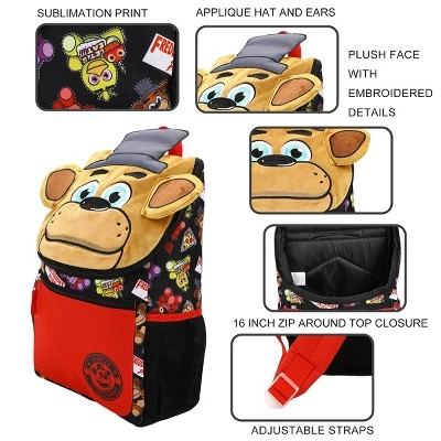 - CUSTOM DESIGN: This backpack features a plush Freddy with embroidered details, adding a fun and authentic touch to your Five Nights At Freddy’s collection.