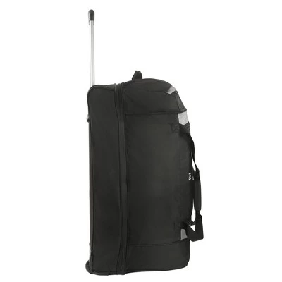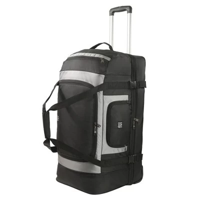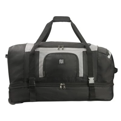 For long trips, there is no duffel like the FUL Rig 30in Rolling Duffel Bag. It is mobile on corner-mounted wheels for smooth and easy wheeling through airports and includes a single-Stage retractable handle. It offers split-level storage that lets you organize your essentials with ease, or you can have one large storage compartment with the pass-through zipper panel. The upper compartment includes a zip pocket on each side and the front. A full-length bottom compartment is ideal for large or bulky clothing items and includes a compression strap to secure contents. Adjustable exterior compression straps help compress your contents and keep it secure. Finally, front and rear grab handles make for quick and easy loading into overhead storage bins or trunks.-Mobile on corner-mounted wheels for smooth and easy wheeling through airports.-Single-Stage retractable handle makes travel a breeze and tucks away when not in use.-Split-level storage lets you organize your essentials with ease, or you can have one large storage compartment with the pass-through zipper panel.-Upper compartment includes a zip pocket on each side and the front of the bag. -Full-length bottom compartment is ideal for large or bulky clothing items and includes a compression strap to secure contents. -Includes adjustable exterior compression straps to help compress your contents and keep it secure. -Front and rear grab handles make for quick and easy loading into overhead storage bins or trunks.-30H X 15W X 14D-Imported.-This product may contain a chemical known by the state of California to cause cancer, birth defects, or other reproductive harm. www.p65warnings.ca.gov