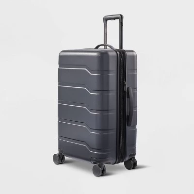 Travel in style and convenience by packing your belongings in this Hardside Medium Checked Suitcase from Open Story™. This hardside rolling suitcase features a full zip-around closure that can expand 2″ to offer you extra space for additional stuff. The interior features a zipper compartment with a generous mesh zip pocket on one side, while the other side is designed with cross straps to allow you to pack heavier items. Designed with eight wheels, this medium checked suitcase features a retractable handle with a locking mechanism for smooth handling and gliding. Plus, a top and side handle let you carry it just the way you like.