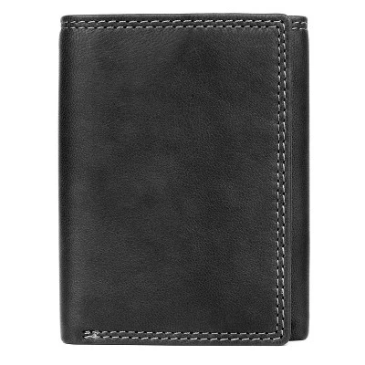 - J. Buxton Hunt RFID Blocking Three-Fold Leather Wallet with Two-Row Stitch Detail
