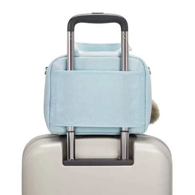 Make it easy to tote your lunch! This simple-to-clean, lined lunch bag has a mesh pocket and a trolley sleeve so you can slip it over the handle of your wheeled backpack.