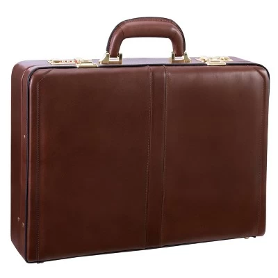 This leather attaché case by McKlein provides a stylish way to carry important documents. The built-in lock and latch closure make it easy to keep your documents safe. An interior pocket makes it possible to stay organized while you travel.
