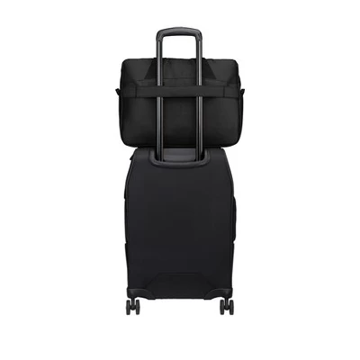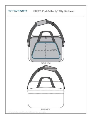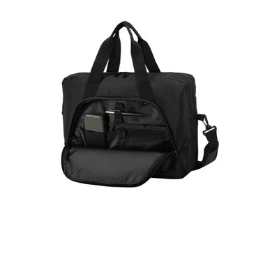 600D polyester canvas; 360D polyester twisted twill canvas Large zippered main compartment Interior padded laptop compartment Front zippered pocket with interior organization panel Removable adjustable padded web shoulder strap Metal zipper pulls Web handles Luggage trolley pass through on back Laptop sleeve dimensions: 8 h x 15 w x 1 d; fits most 15 laptops Dimensions: 12.5 h x 16.375 w x 4 d; Approx. 819 cubic inchesNote: Bags not intended for use by children 12 and under.