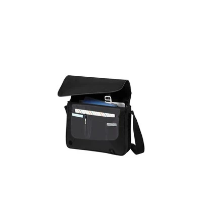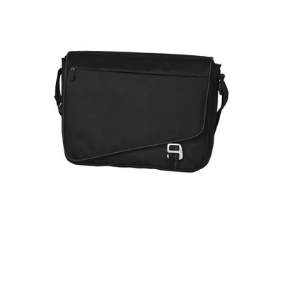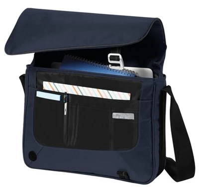 Constructed from durable ballistic fabric this modest modern messenger will keep basics organized while protecting your tablet and laptop with padded compartments.1 680 denier ballistic polyesterLarge main compartment with padded tablet sleeveZippered pocket on front flap for easy embellishmentOrganization panel under asymmetrical front flapAdjustable sling shoulder strap Laptop sleeve dimensions: 11 h x 14.5 w x 1 d; fits most 15 laptopsDimensions: 11 h x 15 w x 3.25 d; Approx. 536 cubic inchesNote: Bags not intended for use by children 12 and under. Includes a California Prop 65 and social responsibility hangtag.