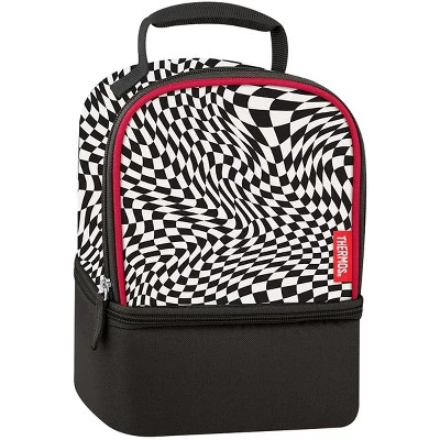 The Thermos Kid’s Skater Dual Compartment Lunch Box is the perfect lunch box for those who love checkered Vans. The black and white modified checkered pattern along with red trim makes this one cool-looking insulated lunch box. Dual compartments are designed for a sandwich box on the bottom and a Thermos bottle and snacks on top. Perfect for taking lunch to school while looking super cool. Features: Superior insulation helps keep your child’s food fresh. Dual compartments make it easy to organize your child’s lunch, snacks and more. Durable, easy-to-clean fabric. Reinforced double stitching provides durability. Padded handle for easy carrying.